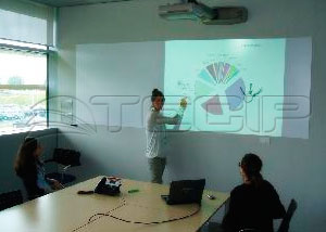 Descripción La innovadora Lámina Auto-adhesiva Whiteboard se aplica directamente sobre la superficie que se quiere convertir en pizarra blanca. Gracias a su sedoso acabado mate, la Lámina PWF-500 puede servir de pizarra y pantalla. Además de su brillo uniforme ofrece un excelente ángulo de visión. No solo es mucho más ligera que una pantalla de proyección tradicional, también ahorra espacio y se integra perfectamente con la ambientación interior de cualquier oficina. Al convertir la pared entera en pizarra y pantalla de proyección a la vez, aumenta la productividad y creatividad de cualquier reunión. Los textos y dibujos se borran fácilmente, siempre que se hagan con rotuladores en base agua. La Lámina PWF-500 es la solución ideal para oficinas, salas de reuniones, auditorios, escuelas, colegios y universidades.