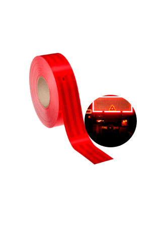 3M Cinta Reflectiva/Reflectante Es una lámina reflectiva/refractante autoadhesiva de color rojo, utilizada para demarcar camiones y vehículos haciéndolos más visibles de noche. También aplica para diversos trabajos de Señalización.